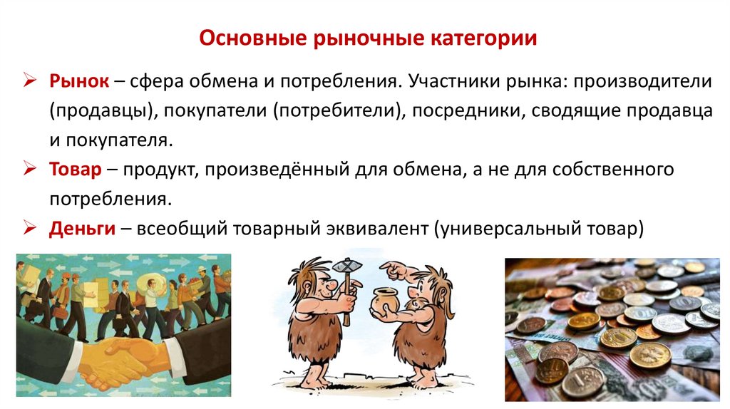 Основные рыночные категорииРынок – сфера обмена и потребления. Участники рынка: производители