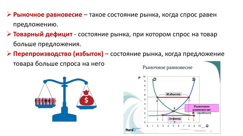 Рыночное равновесие – такое состояние рынка, когда спрос равенпредложению.