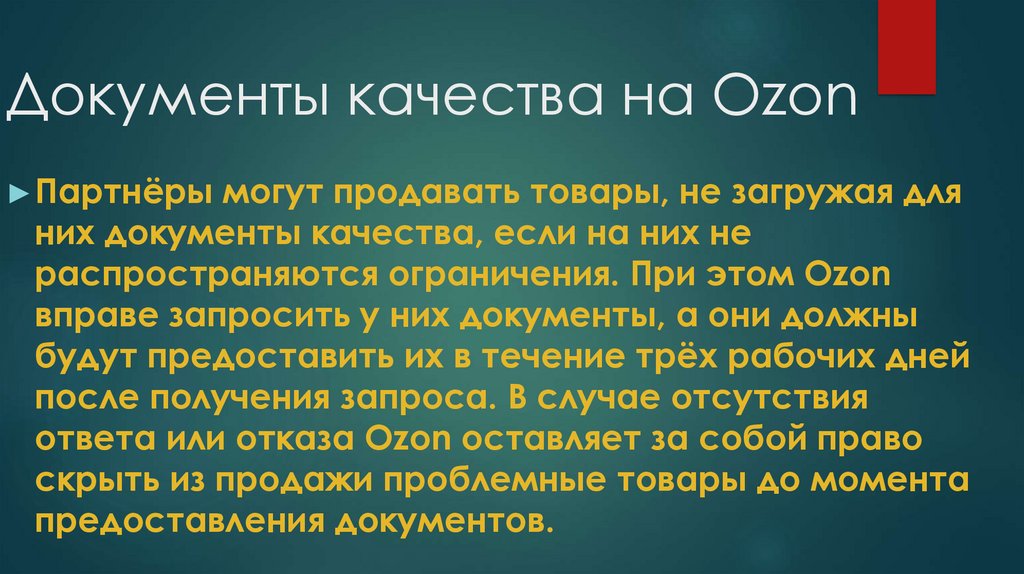 Документы качества на Ozon► Партнёры