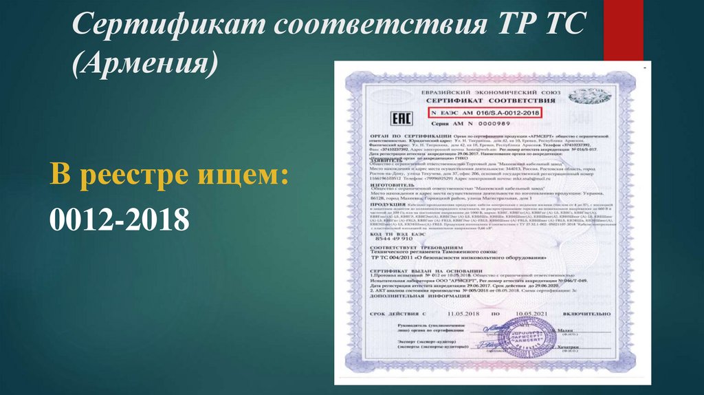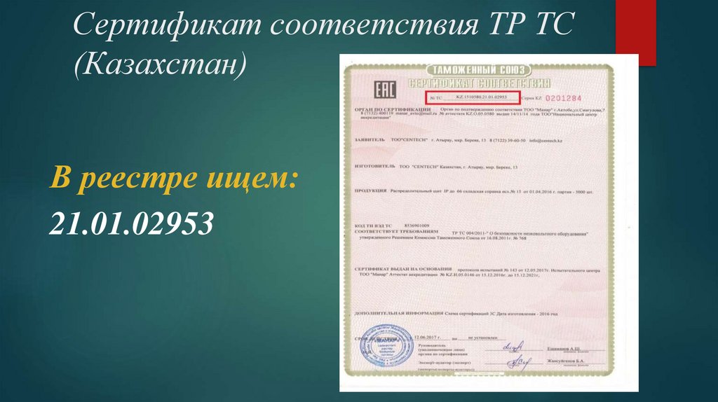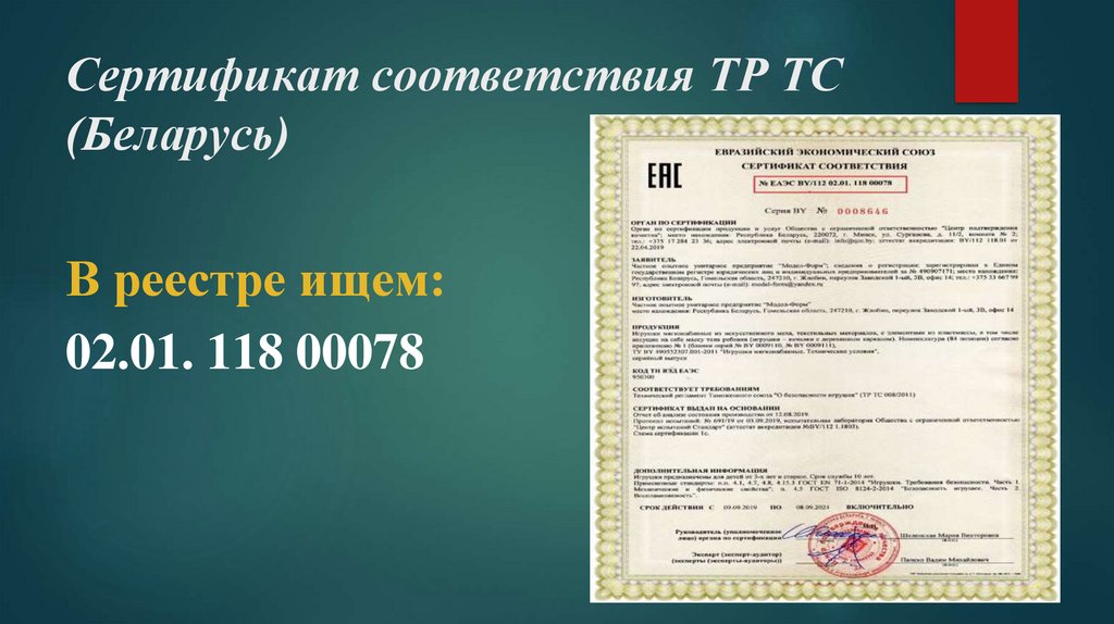 Сертификат соответствия ТР ТС