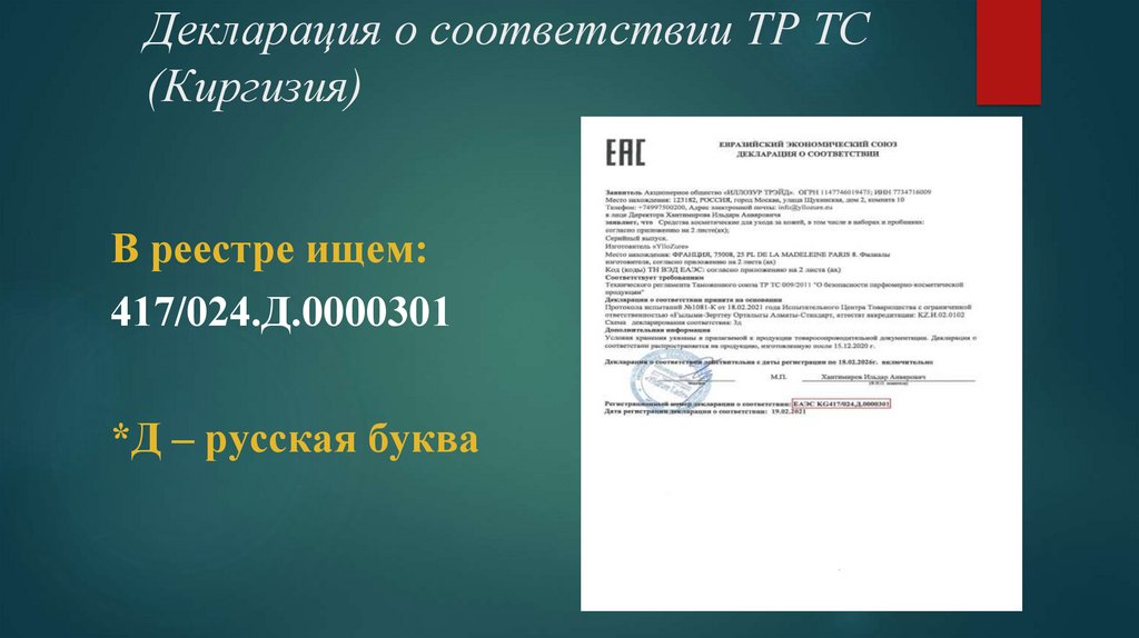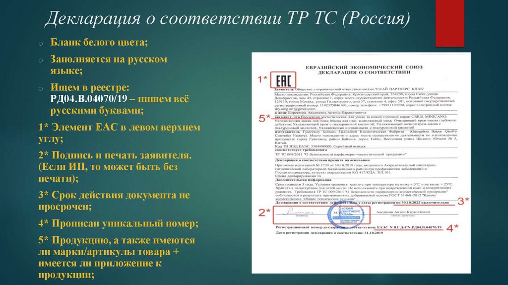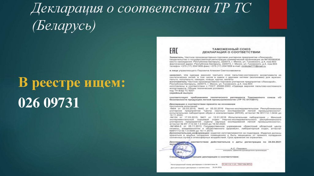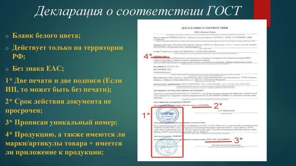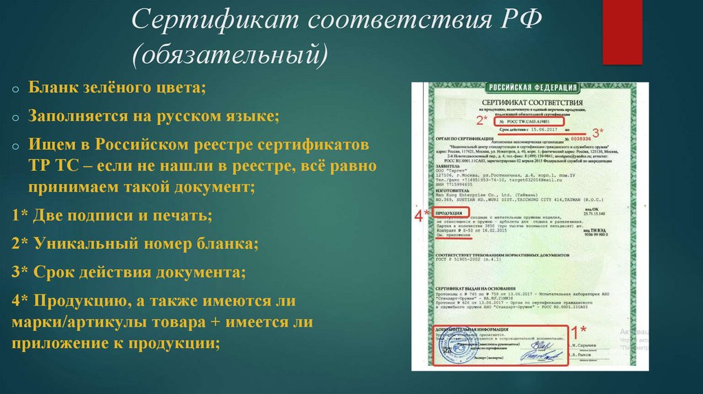 сертификата либо декларации о соответствии.