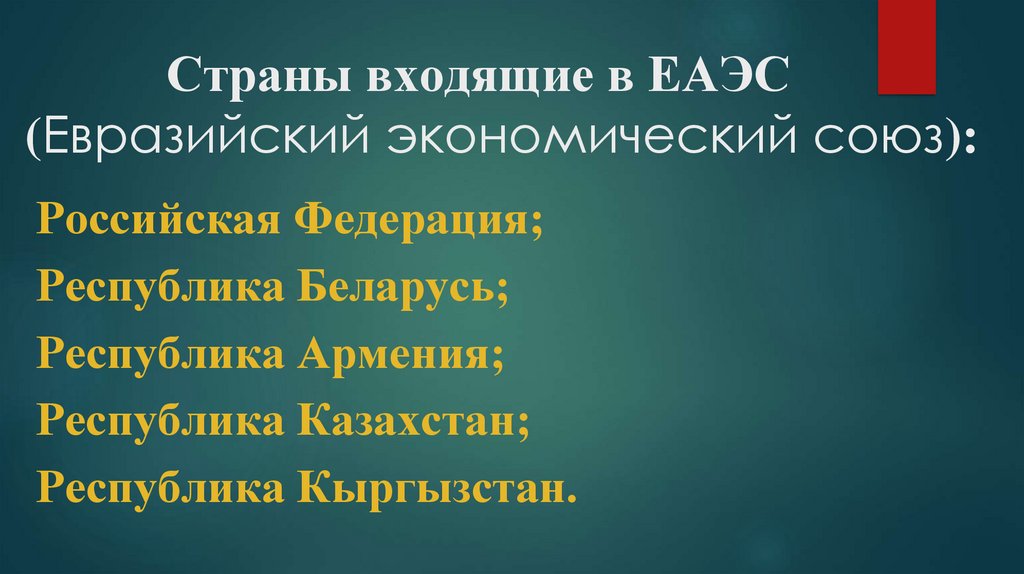 Страны входящие в ЕАЭС(Евразийский экономический союз):