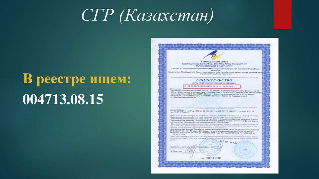 регламентам Таможенного Союза проводится