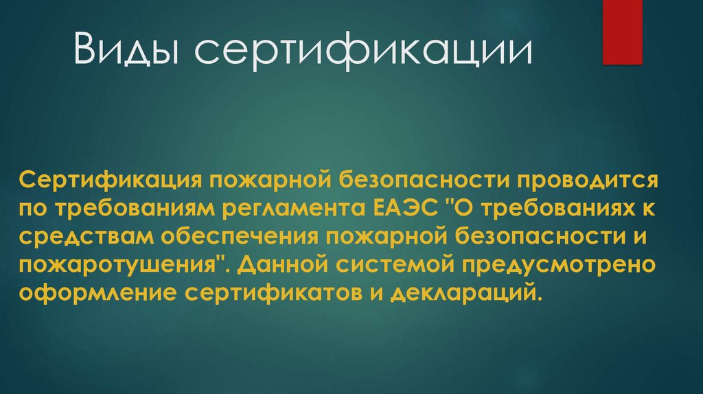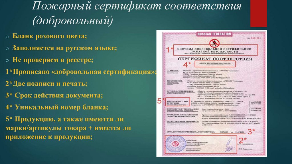 Виды сертификацииСертификация пожарной безопасности проводится