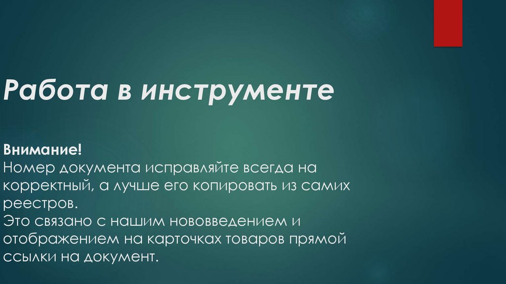 Работа в инструментеВнимание!