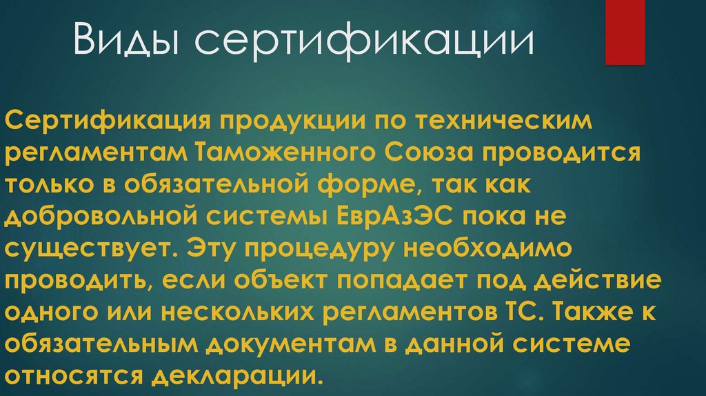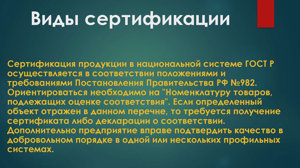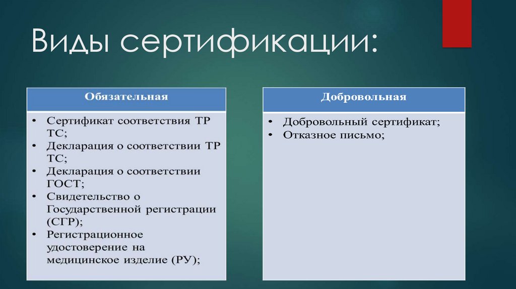Виды сертификации:В России действует несколько