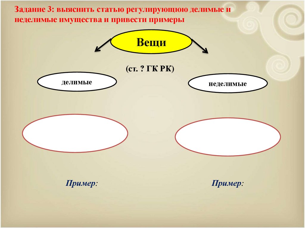 Задание 3: выяснить статью регулирующюю делимые инеделимые имущества и привести примеры