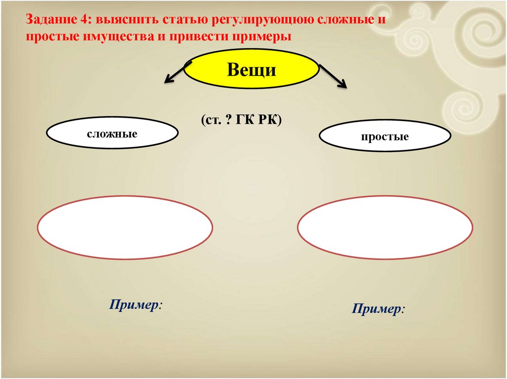 Задание 4: выяснить статью регулирующюю сложные ипростые имущества и привести примеры
