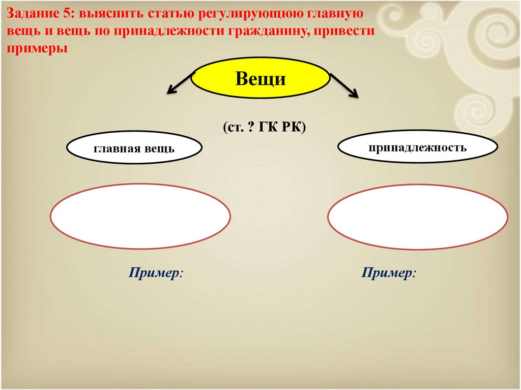 Задание 5: выяснить статью регулирующюю главнуювещь и вещь по принадлежности гражданину, привести