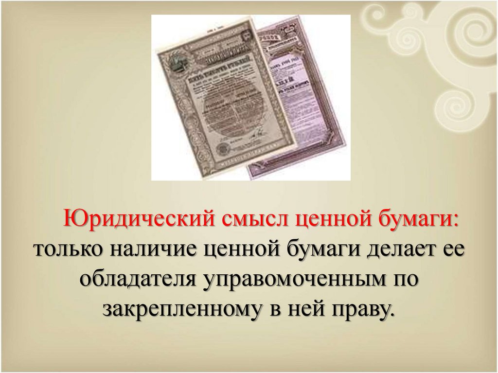 Юридический смысл ценной бумаги:только наличие ценной бумаги делает ее