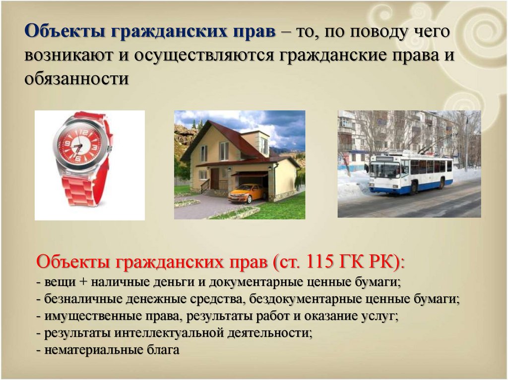 Объекты гражданских прав (ст. 115 ГК РК):