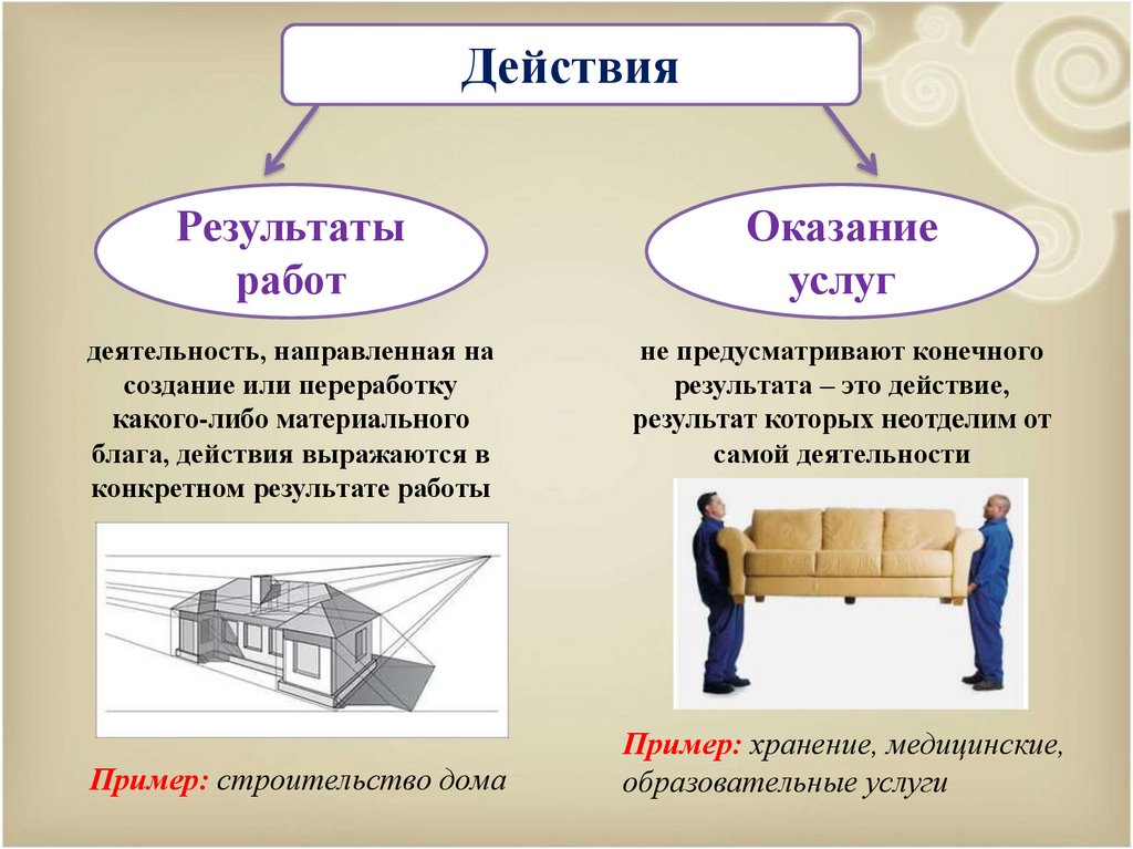 - имущественные права, результаты работ и оказание услуг;