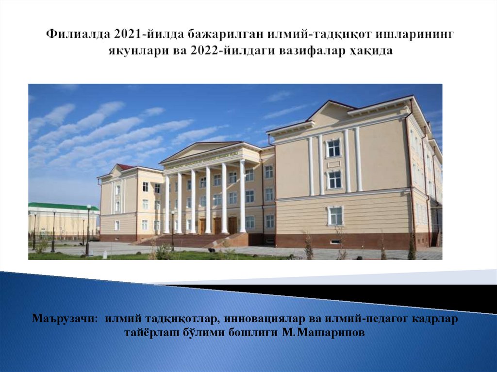 Маърузачи: илмий тадқиқотлар, инновациялар ва илмий-педагог кадрлартайёрлаш бўлими бошлиғи М.Машарипов