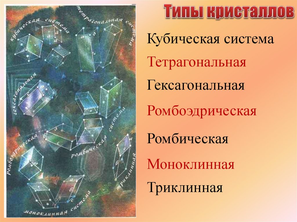 «кристаллическая решетка», «монокристалл», «поликристалл»,