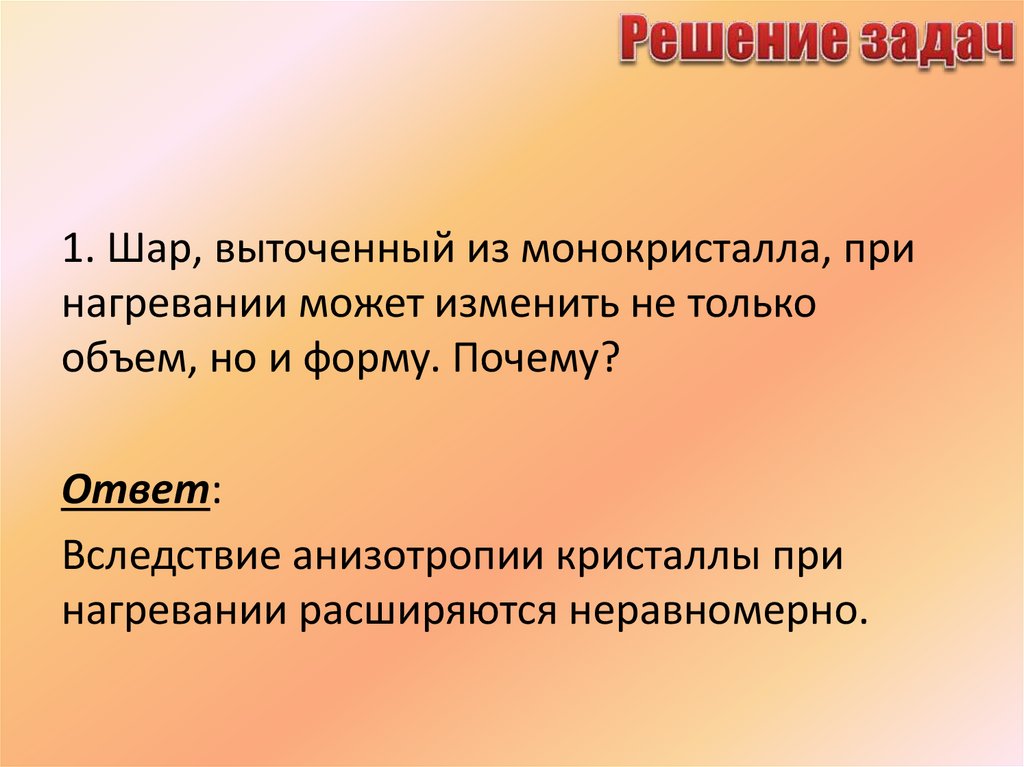 1. Шар, выточенный из монокристалла, принагревании может изменить не только