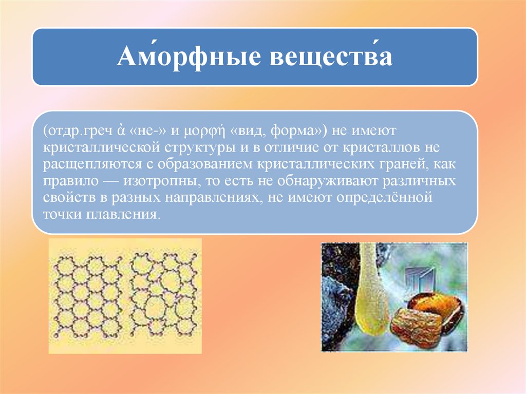 Ам́орфные веществ́а(отдр.греч ἀ «не-» и μορφή «вид, форма») не имеют
