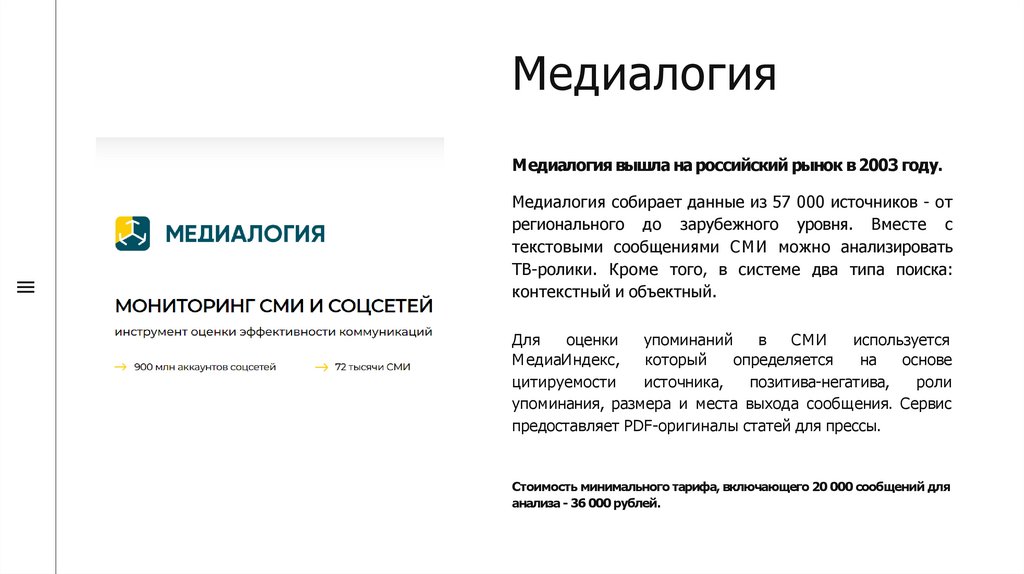 Тарифы на мониторинг СМИ начинаются от 15 000 рублей.