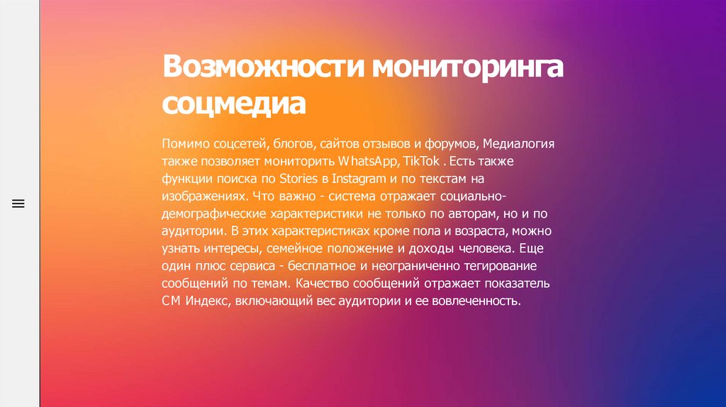 Возможности мониторингасоцмедиа