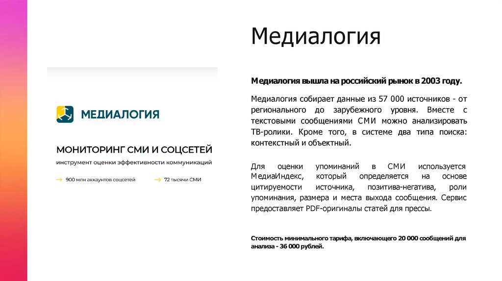 Тарифы на мониторинг СМИ начинаются от 15 000 рублей.