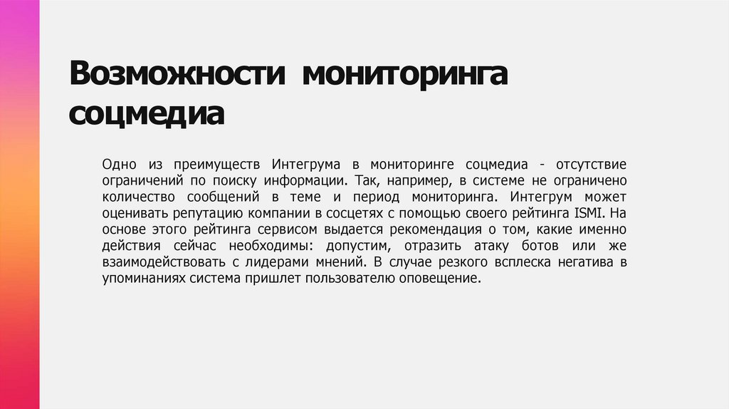 Одно из преимуществ Интегрума в мониторинге соцмедиа - отсутствие