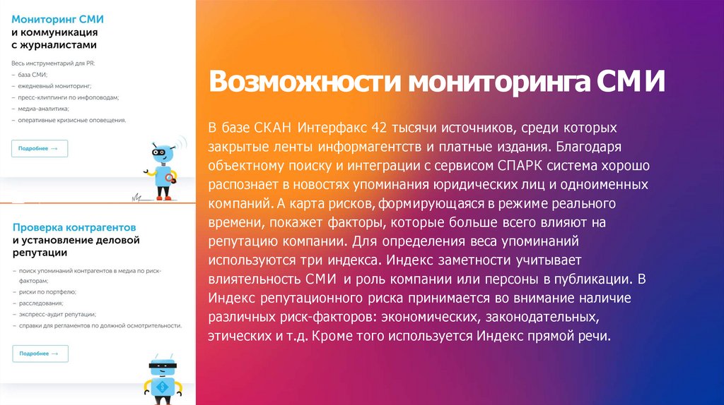 Возможности мониторинга СМИВ базе СКАН Интерфакс 42 тысячи источников, среди которых