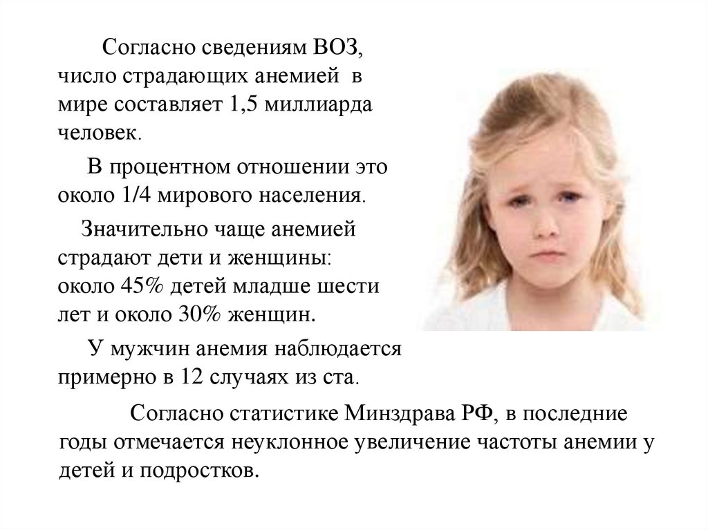 Согласно сведениям ВОЗ,число страдающих анемией в