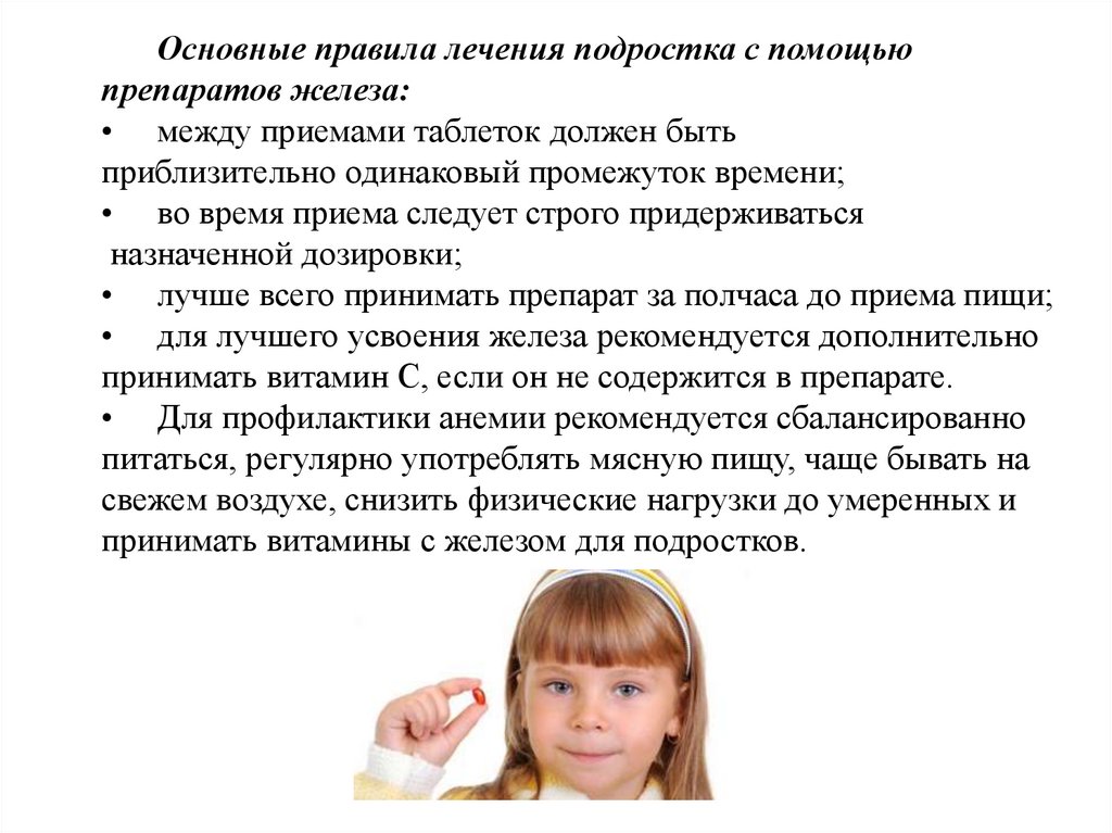 Основные правила лечения подростка с помощьюпрепаратов железа: