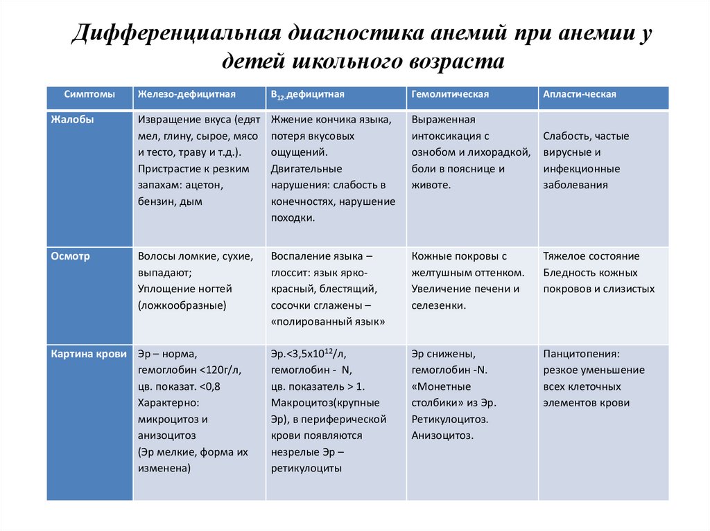 Дифференциальная диагностика анемий при анемии удетей школьного возраста