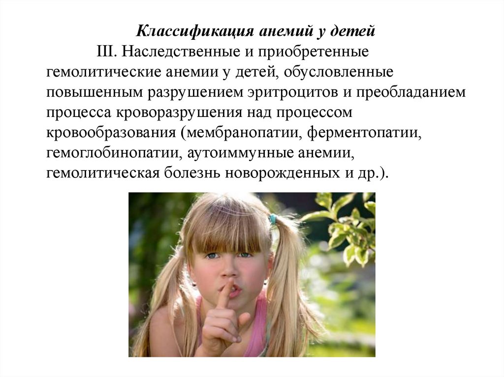 Классификация анемий у детейIII. Наследственные и приобретенные