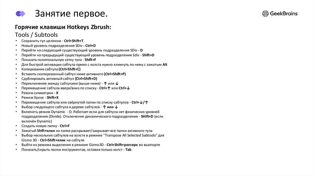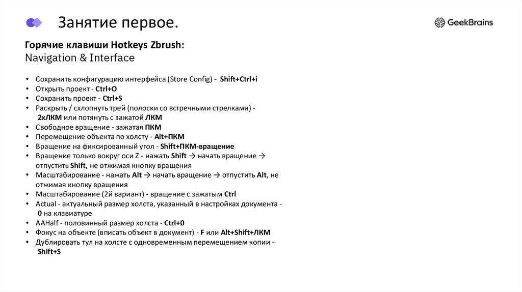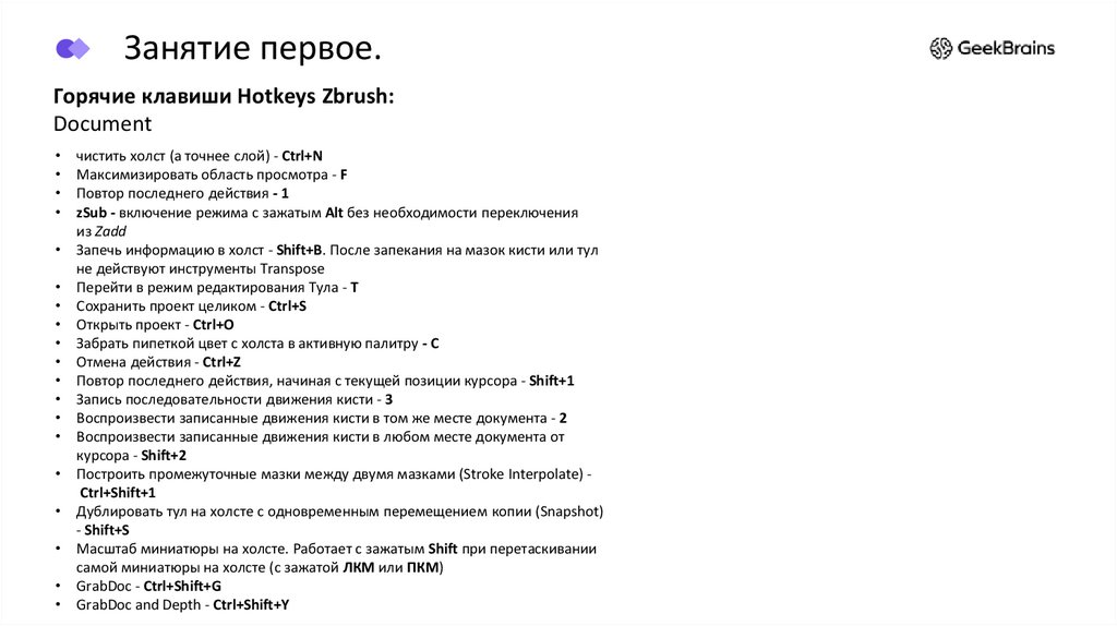 Занятие первое.Горячие клавиши Hotkeys Zbrush: