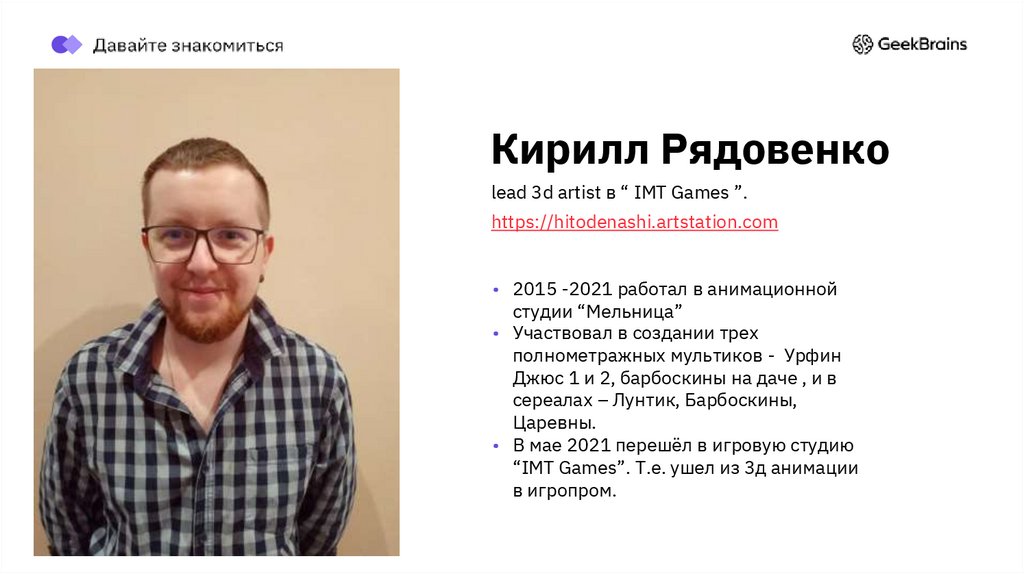 Кирилл Рядовенкоlead 3d artist в “ IMT Games ”.