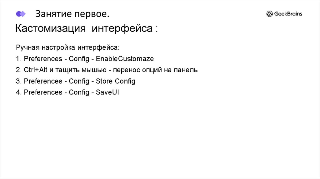 Сохранить конфигурацию интерфейса (Store Config) - Shift+Ctrl+i