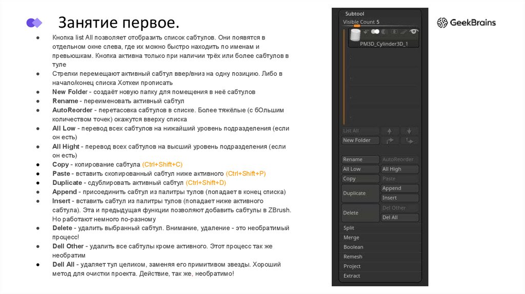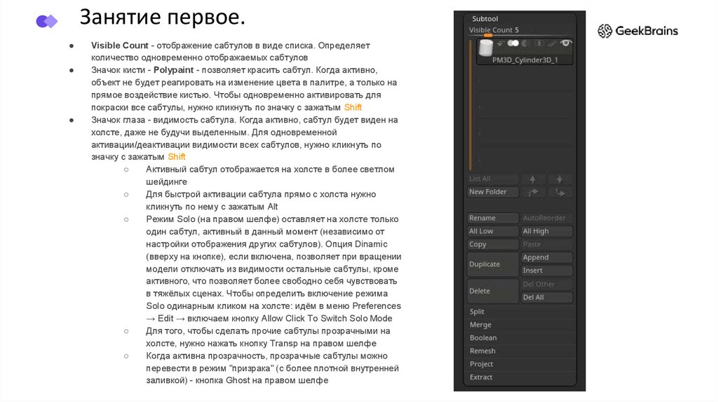 сабтула). Эта и предыдущая функции позволяют добавить сабтулы в ZBrush.