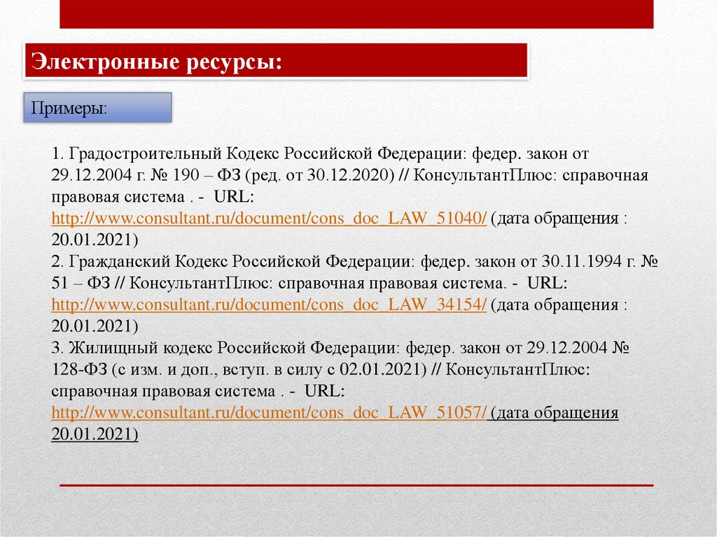29.12.2004 г. № 190 – ФЗ (ред. от 30.12.2020) // КонсультантПлюс: справочная