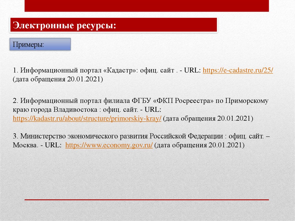 Электронные ресурсы:Примеры: