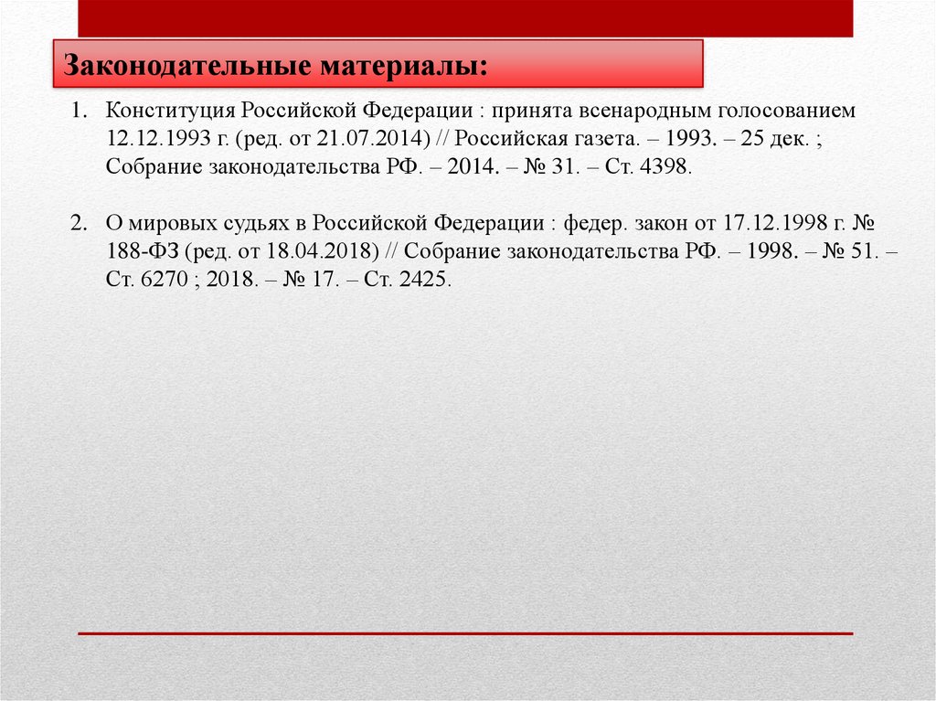 2. О мировых судьях в Российской Федерации : федер. закон от 17.12.1998 г. №