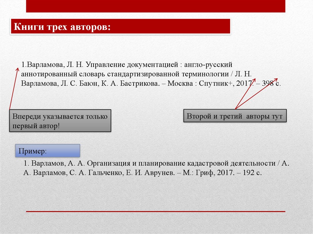 Книги трех авторов:1.Варламова, Л. Н. Управление документацией : англо-русский