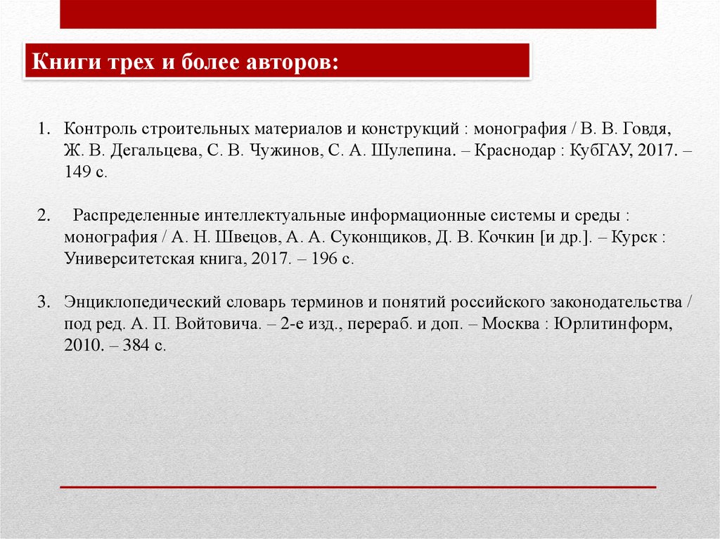 Книги трех и более авторов:1. Контроль строительных материалов и конструкций : монография / В. В. Говдя,