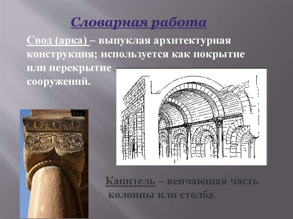 Словарная работаСвод (арка) – выпуклая архитектурная
