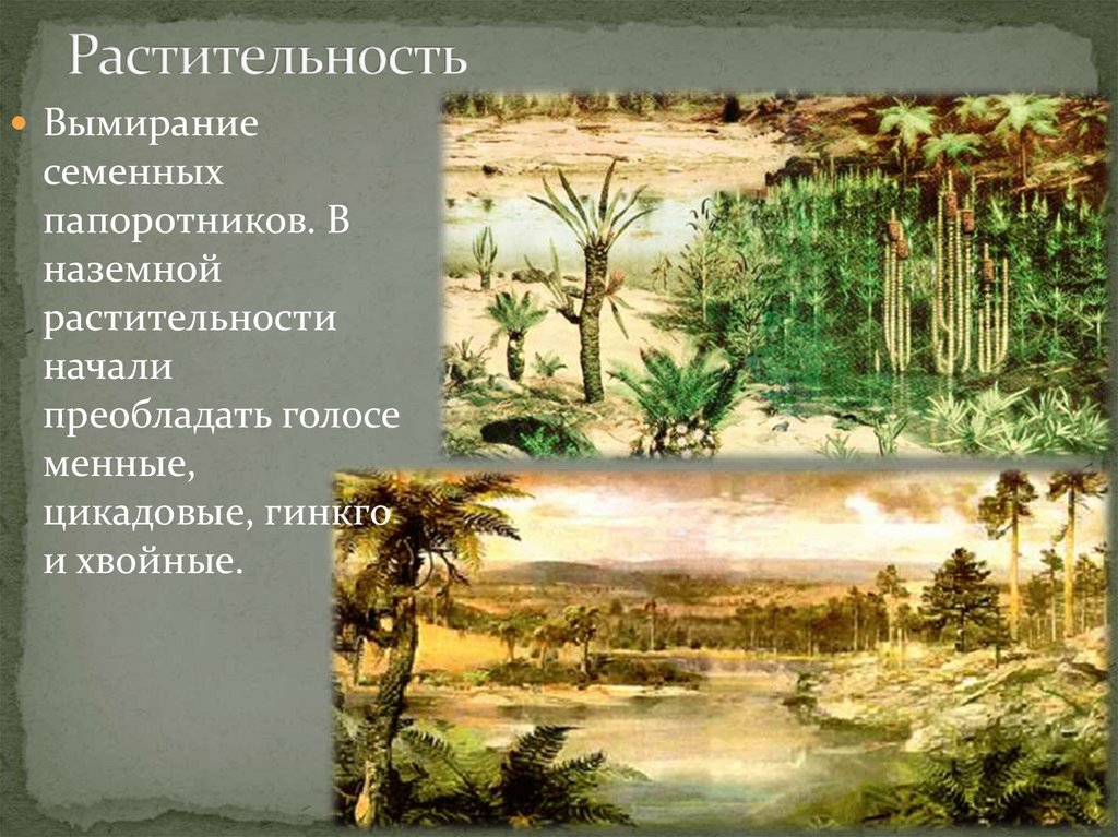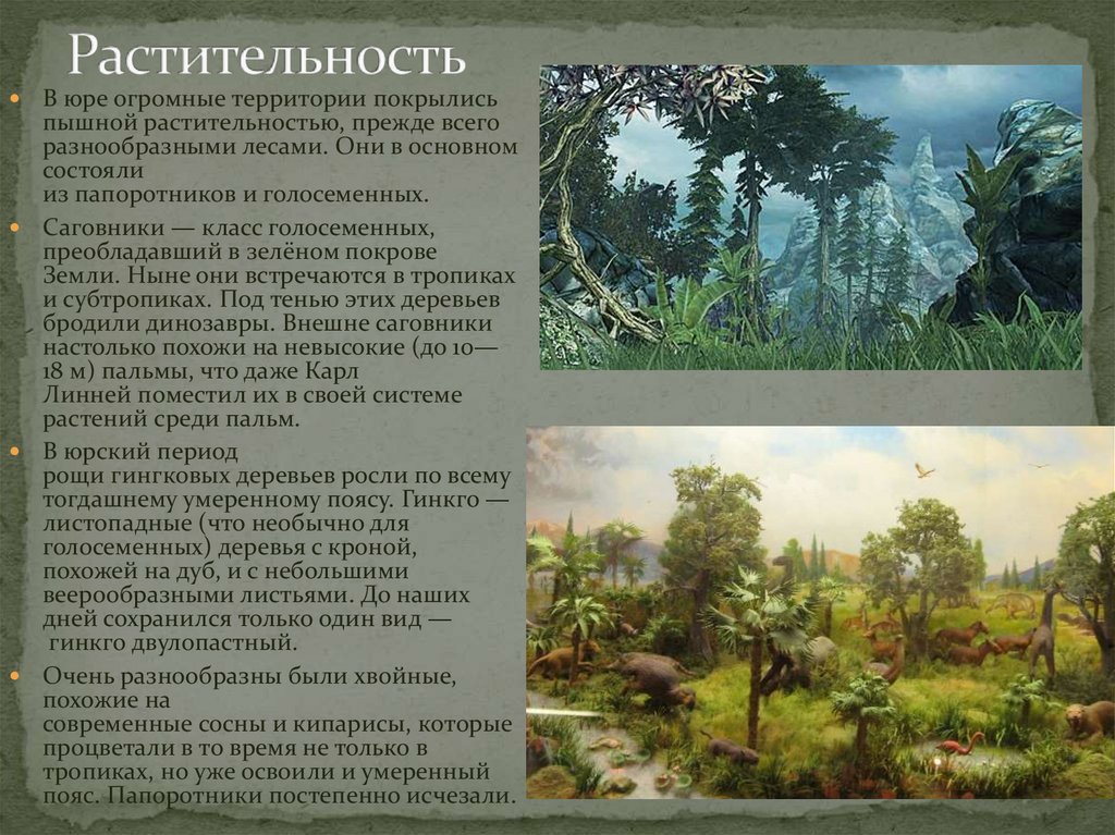 В юре огромные территории покрылисьпышной растительностью, прежде всего