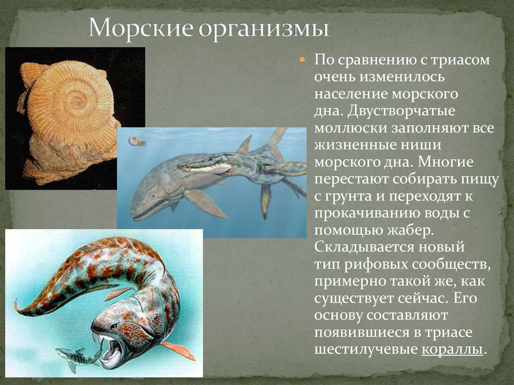 Появляются новые виды моллюсков (улитки, устрицы).