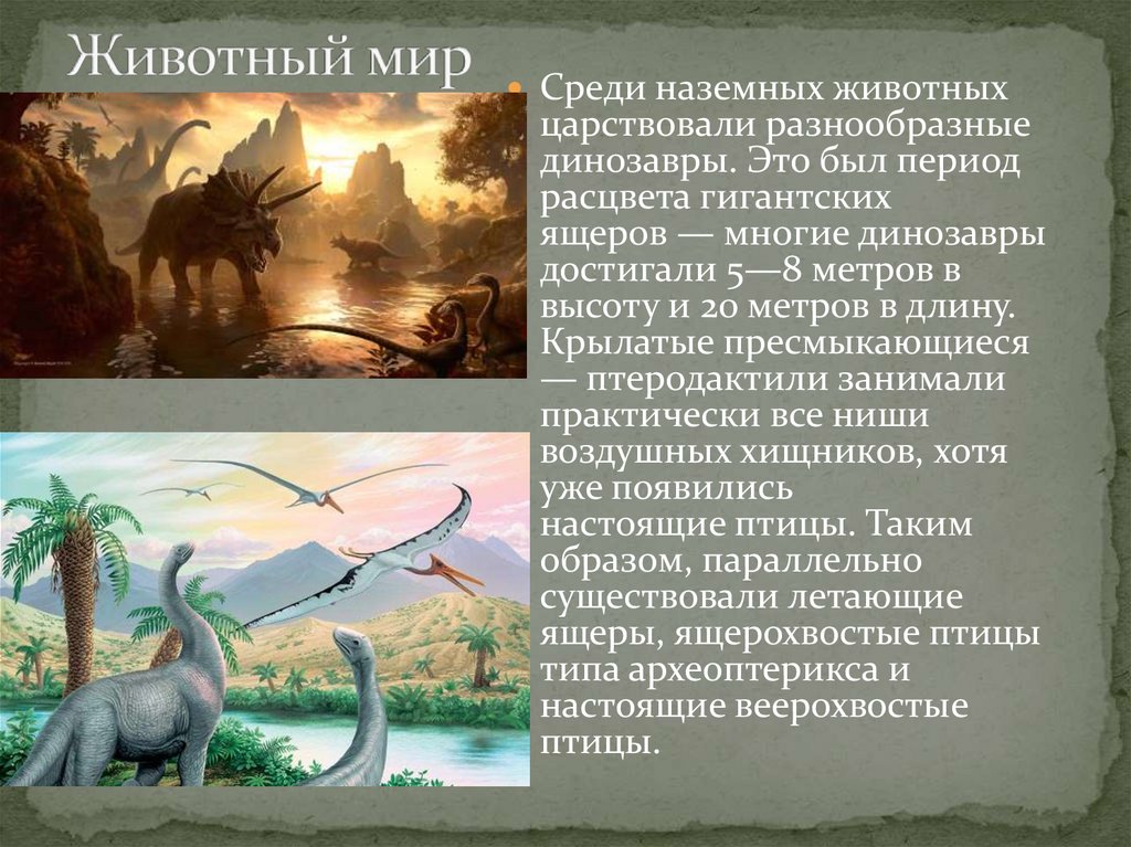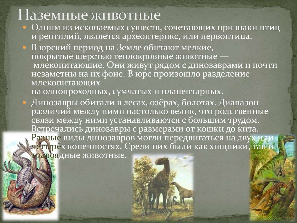 Среди наземных животныхцарствовали разнообразные