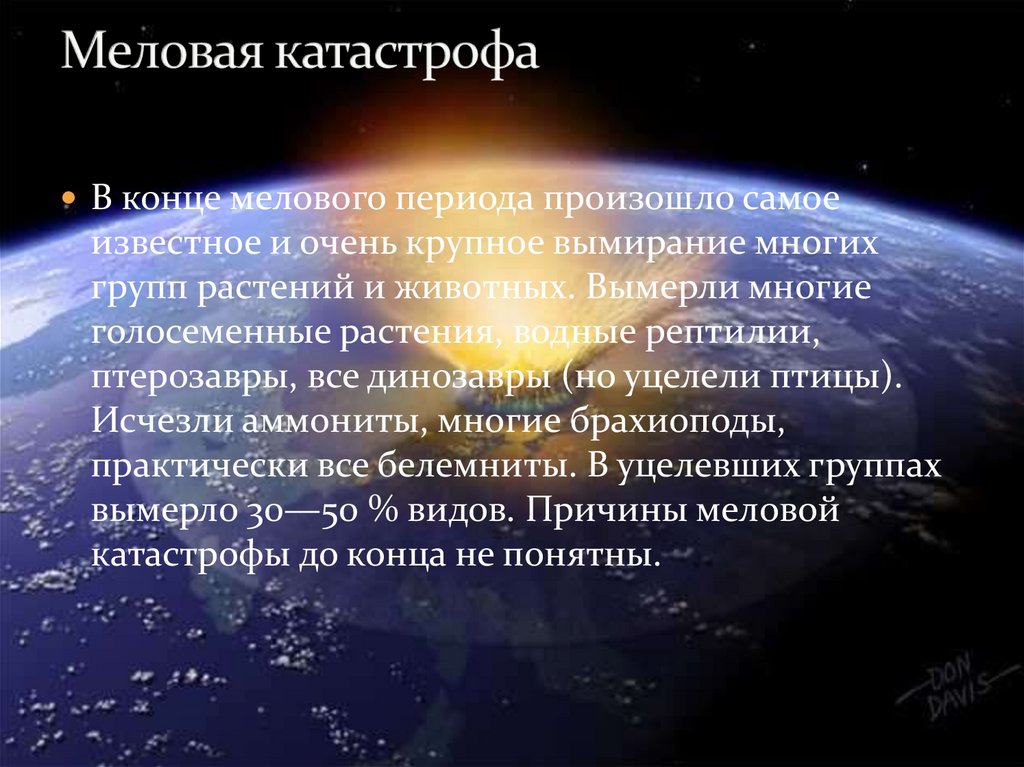 вымерло 30—50 % видов. Причины меловой