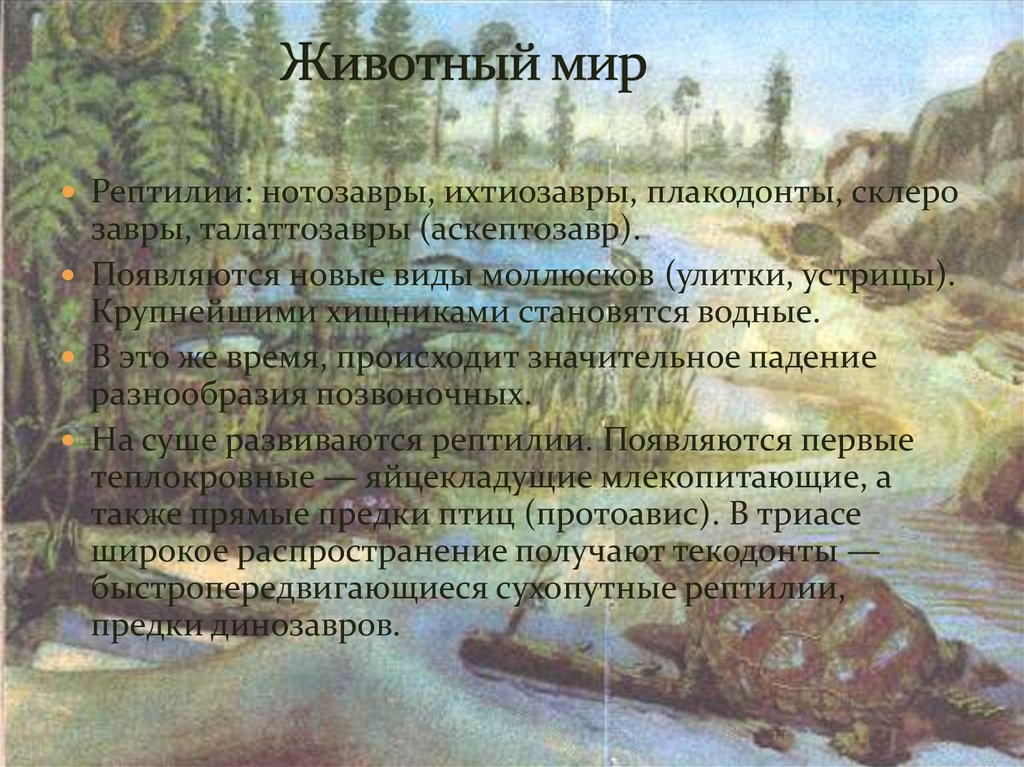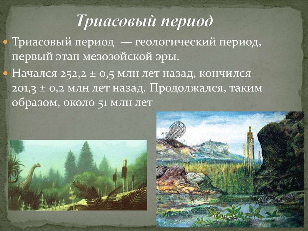 Триасовый период — геологический период,первый этап мезозойской эры.