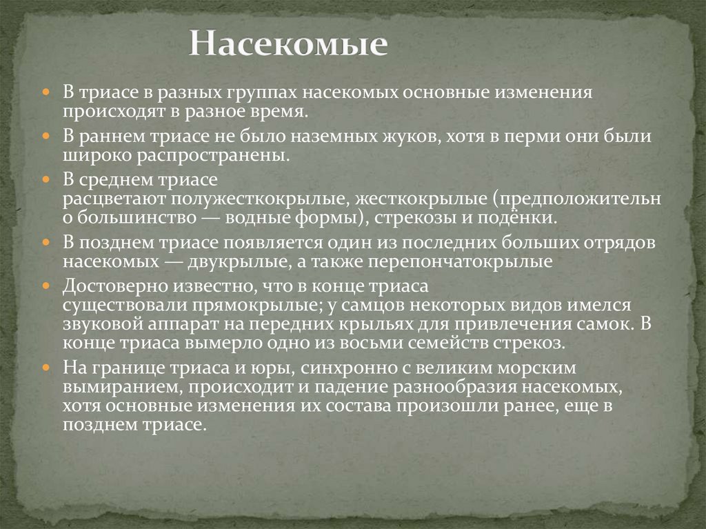 В триасе в разных группах насекомых основные измененияпроисходят в разное время.