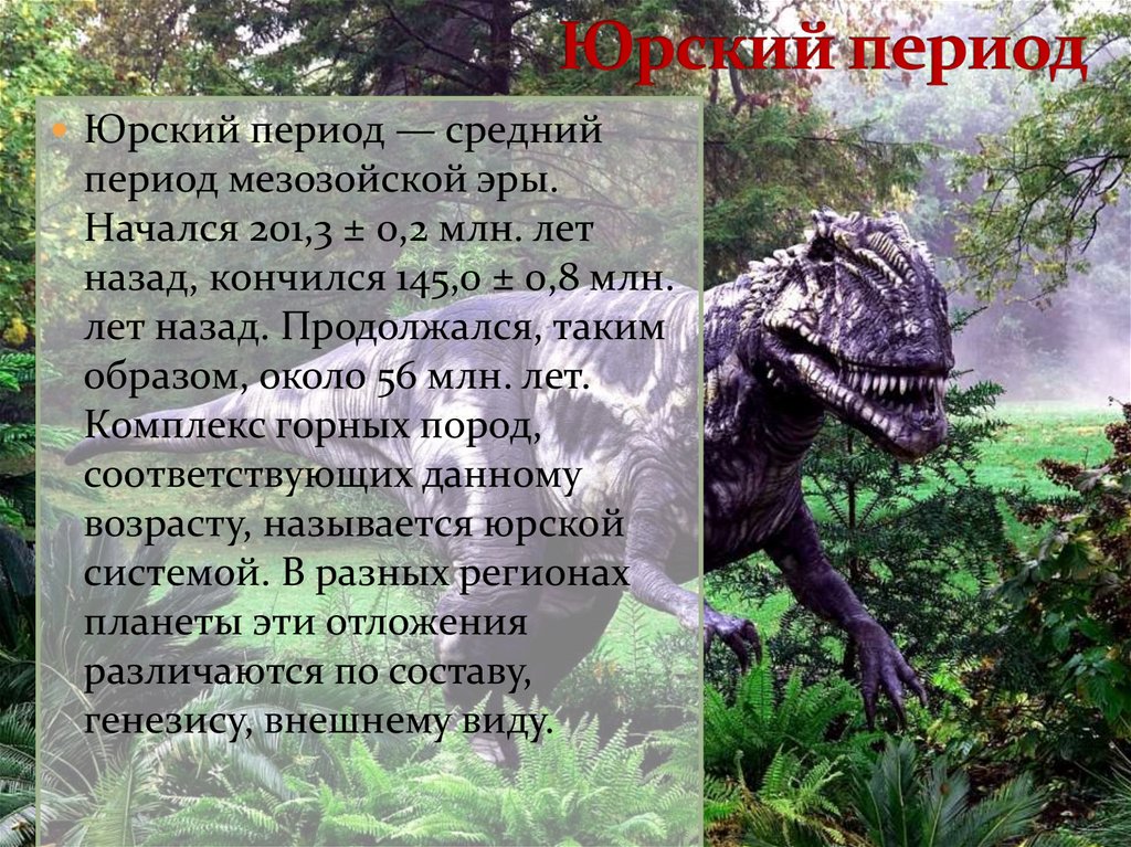 Юрский период — среднийпериод мезозойской эры.