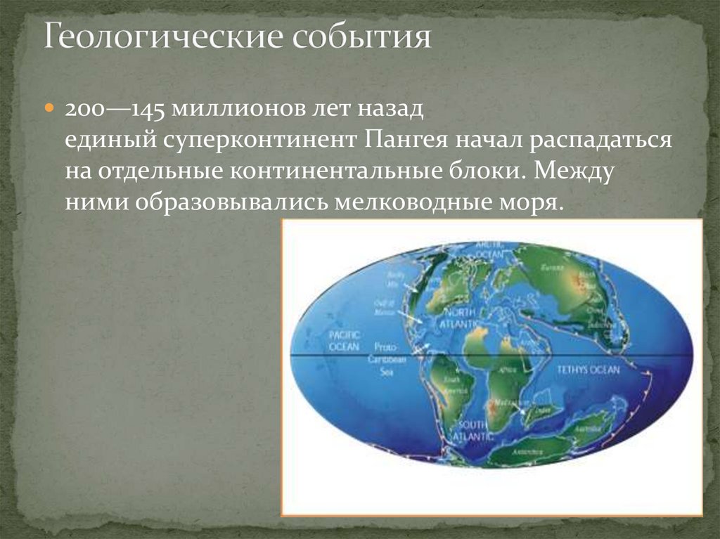 200—145 миллионов лет назадединый суперконтинент Пангея начал распадаться