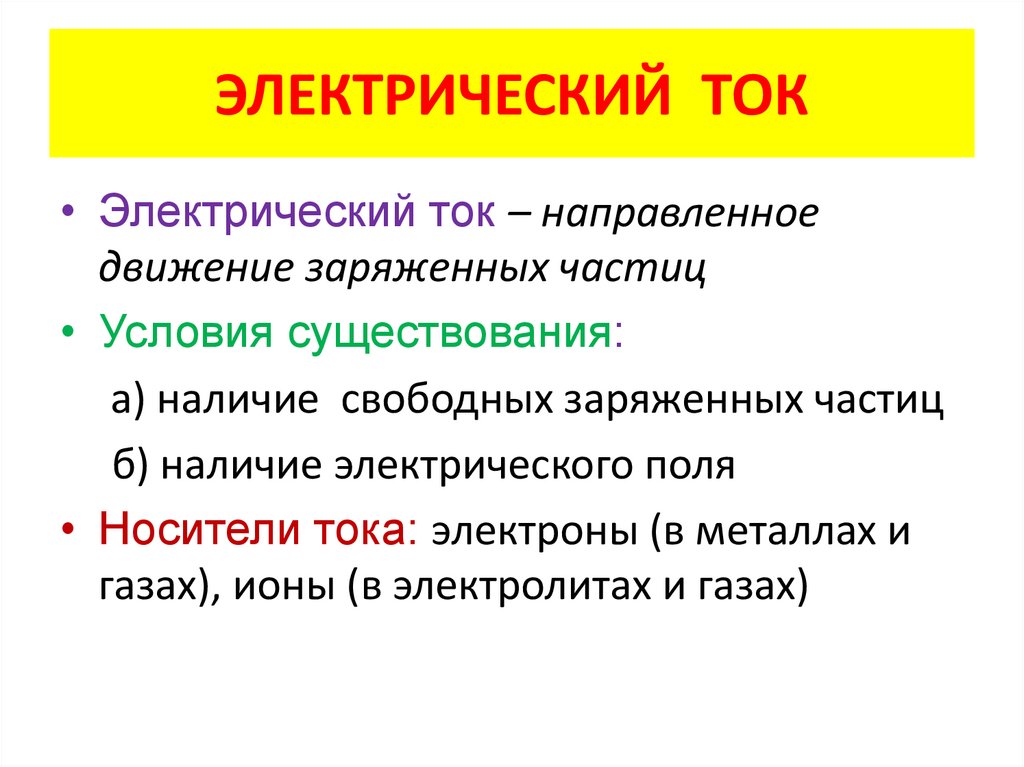 ЭЛЕКТРИЧЕСКИЙ ТОК• Электрический ток – направленное