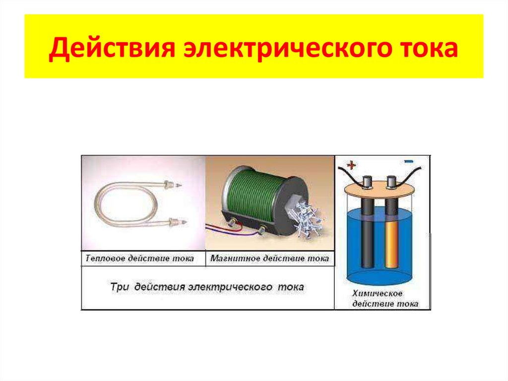 Действия электрического токаДвижение заряженных частиц наблюдать
