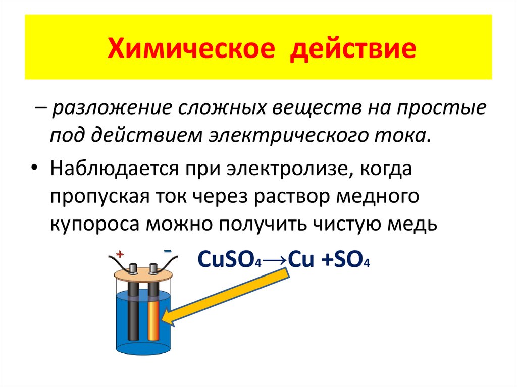 Химическое действие– разложение сложных веществ на простые